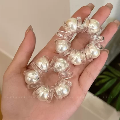 سلك هاتف على شكل ذيل حصان، مرونة عالية، لؤلؤ بسيط متين