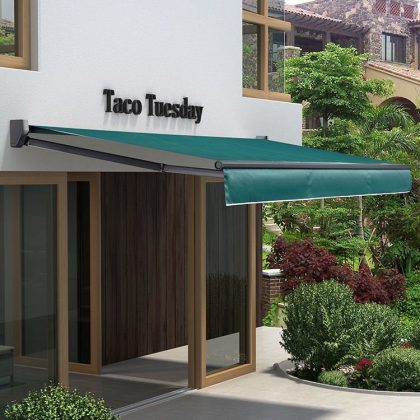 مظلة تلسكوبية كهربائية قابلة للسحب ومزودة يدويًا للمحلات التجارية وأماكن الإقامة وواجهة القهوة ورأس قابل للطي للحماية من الشمس وحماية من المطر