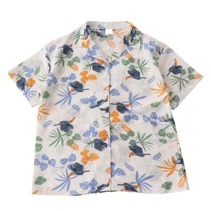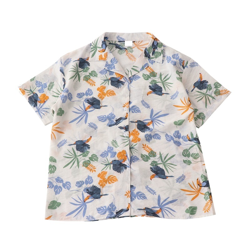 Temperament DuForm Summer Hong Kong Flavor Fresh Holiday Style Dress Collar Printed Shirt Korean Style Loose Show Taste