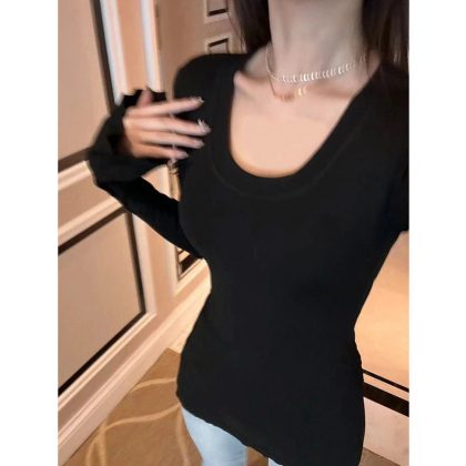 | nameOriginal | Temperament horn sleeve early spring long pleated sexy bottoming shirt long sleeve T-shirt women's decoration tasteful |