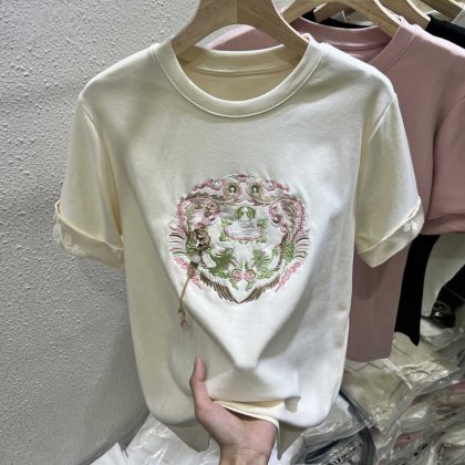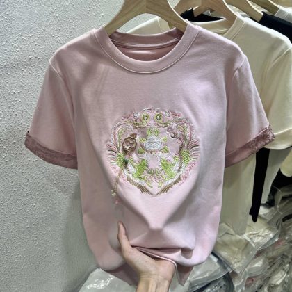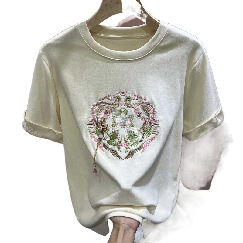 | nameOriginal | Temperament New Chinese Round Neck Guofeng Heavy Industry Embroidered Jacquard Contrast Short-sleeved T-shirt Women's 2024 Summer New Taste |