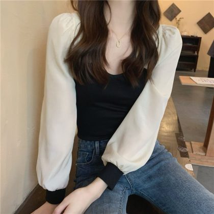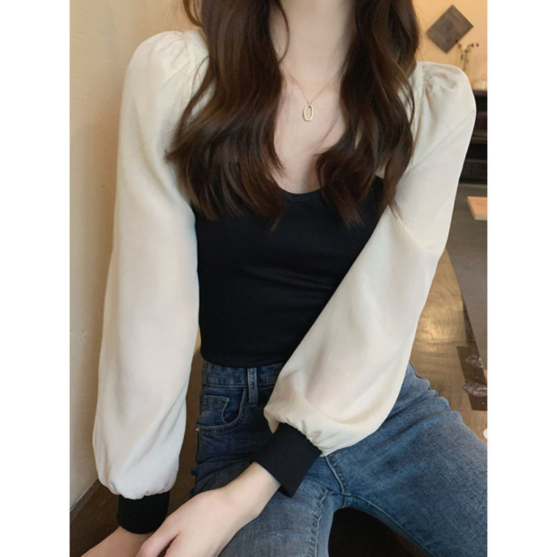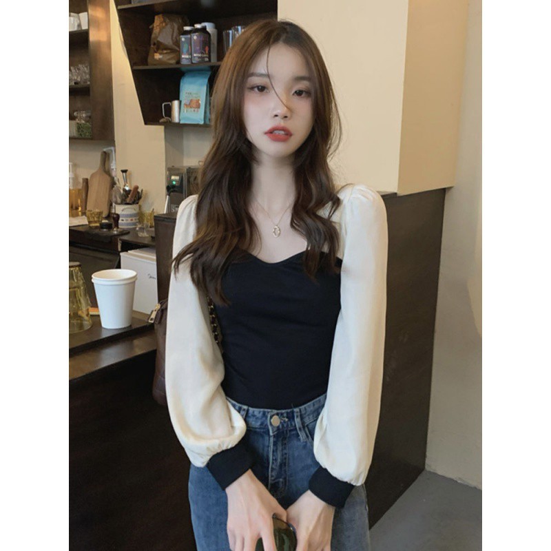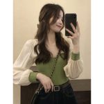 | nameOriginal | Temperament Short Stitching Base Shirt Women's 2024 Spring and Autumn New Design Sense Green Slim-fit Slimming Chic Top |