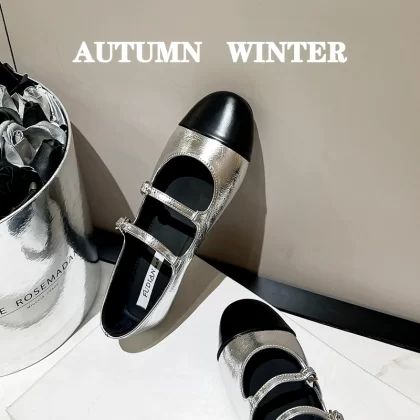 Temperament small fragrant flat autumn and winter silver pumps