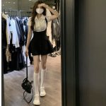 Temperament Small Men's Strap Skirt Black Slimming Short Skirt Women's High Waist Single-breasted Spring and Summer New dress