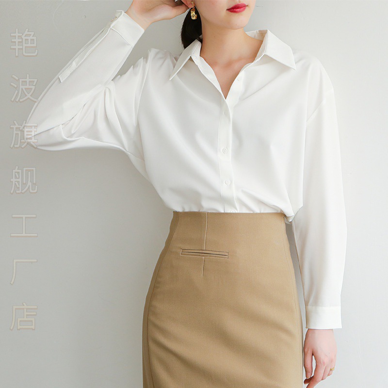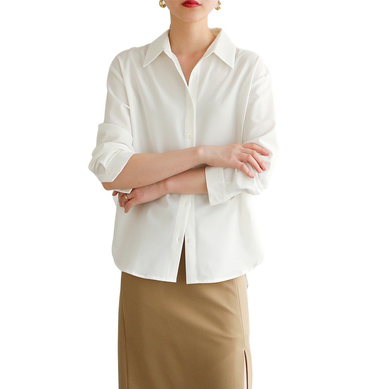 Temperament White Shirt Women's High-end OL Commuter Simple Casual Fashion Loose Temperament Pure Color All-match Taste