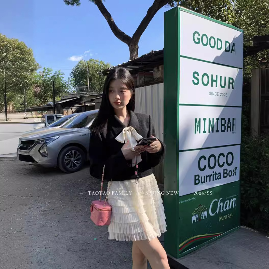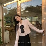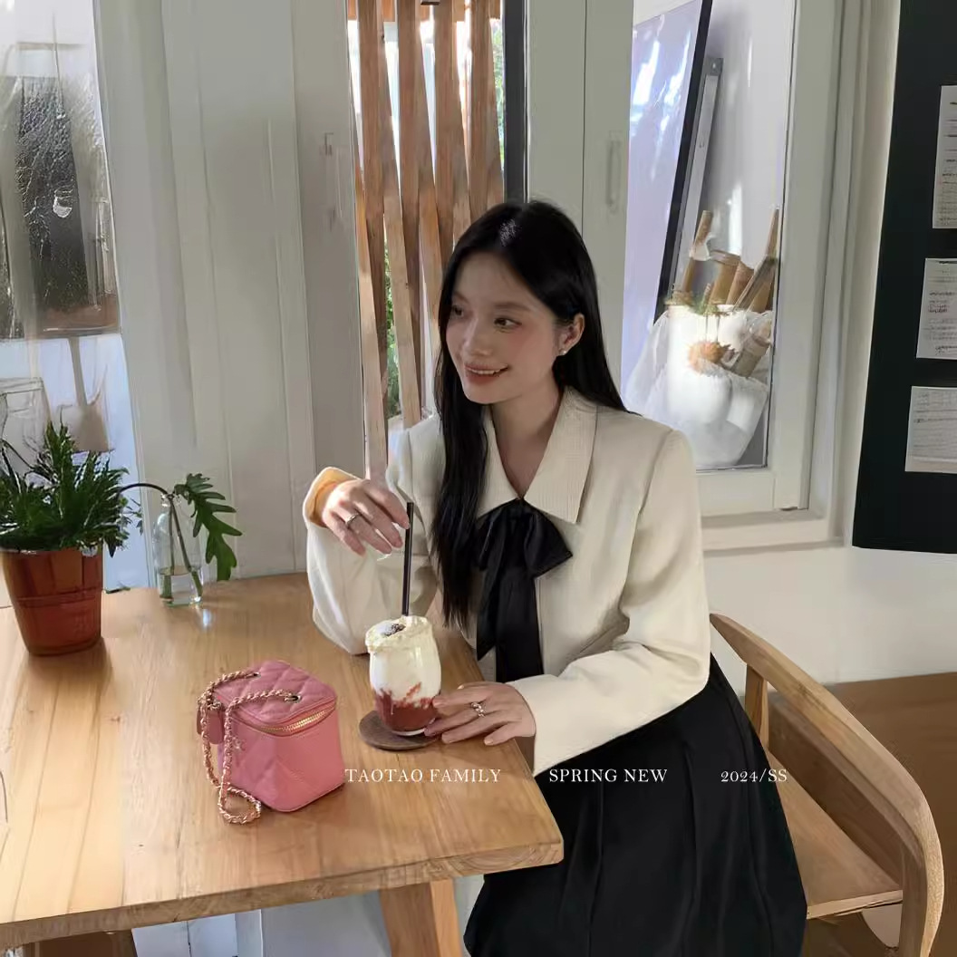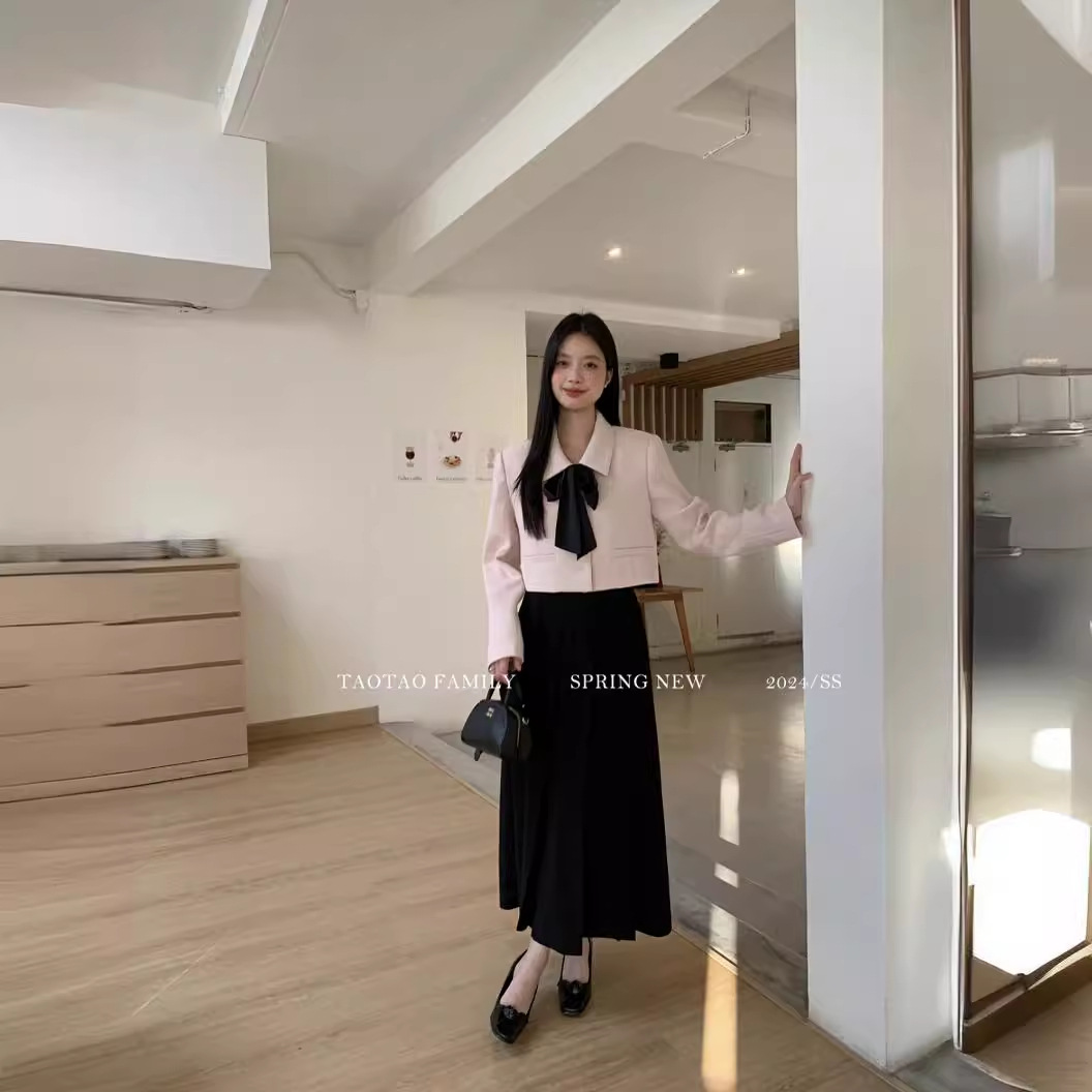 | nameOriginal | Ten three lines Peach Spring New TAOTAOFAMILY Chanel style bow lace-up cardigan coat Y2132 |