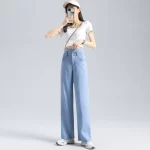 Tencel high-waisted thin light blue loose draped jeans