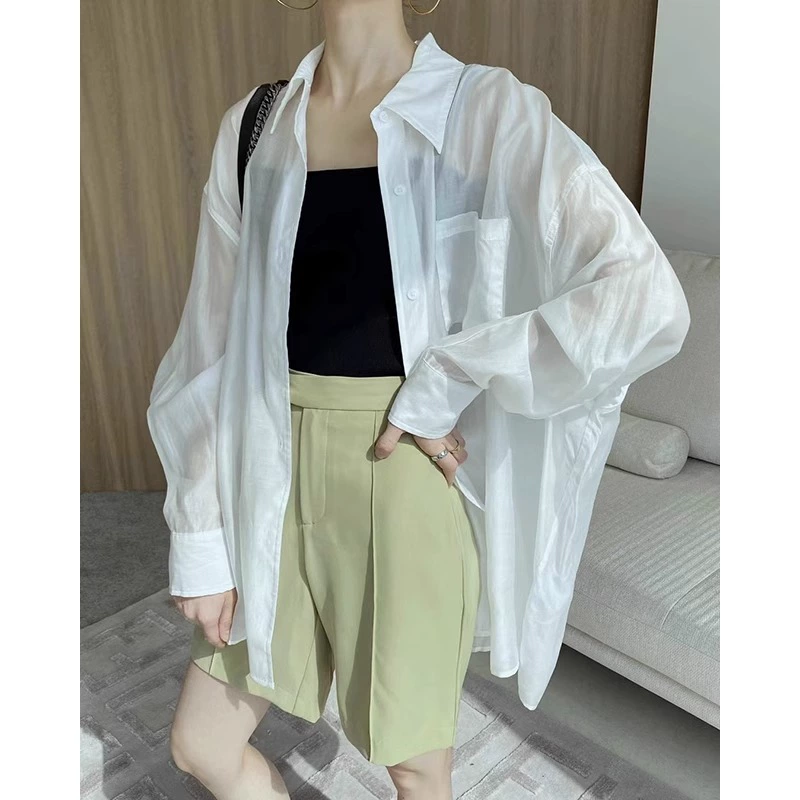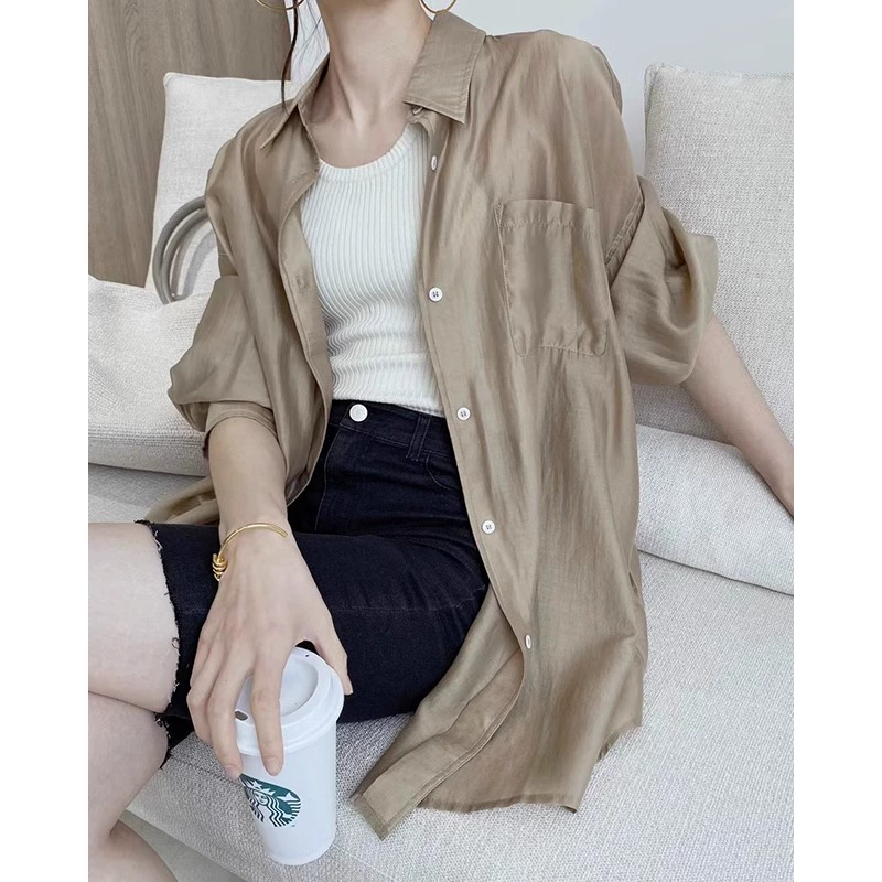 | nameOriginal | Tencel sun protection shirt jacket women's thin summer French lazy style slightly see-through chiffon top with air-conditioning cardigan |