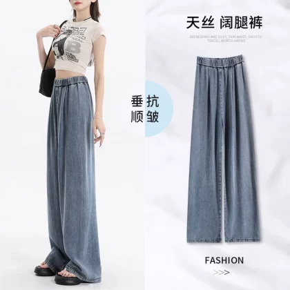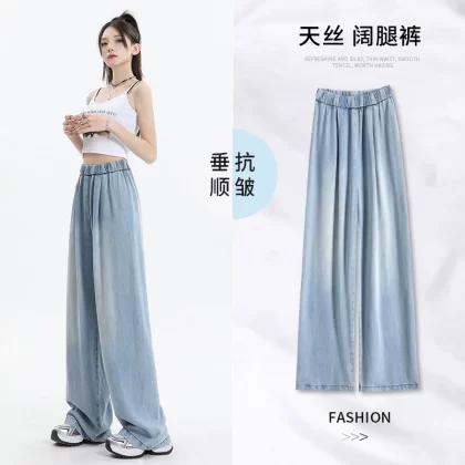 | nameOriginal | Tencel thin elastic waist drapey straight wide leg pants |
