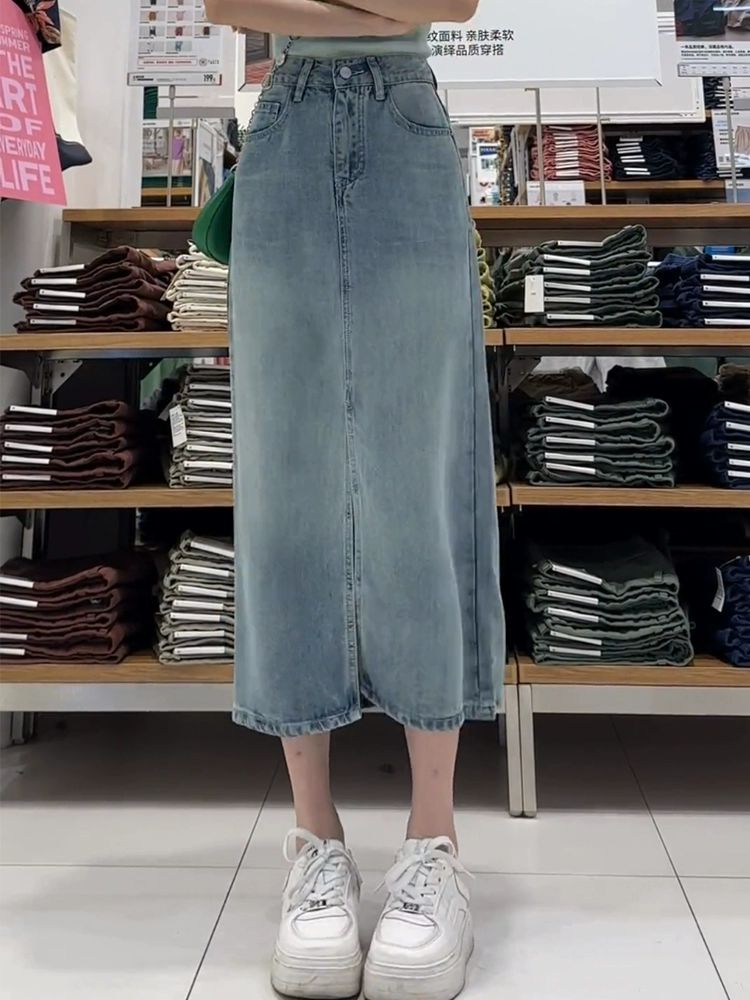 Tencel women's summer flesh-covering mid-length denim skirt