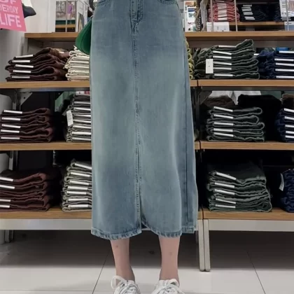 Tiansi Girls Xia تغطي تنورة الدنيم منتصف الطول