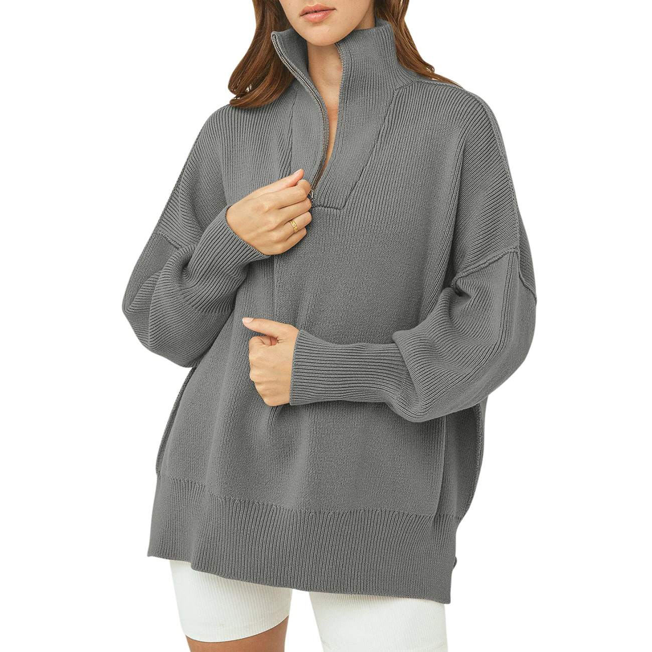 | nameOriginal | Tengqiao Amazon Independent Station Cross-border Autumn and Winter Women's Long Sleeve 1/4 Zipper Pullover Split Solid Color Sweater |