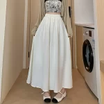 | nameOriginal | Textured cotton and linen skirt pants for women, summer drapey casual a-line skirt for small people, elastic high-waisted mid-length skirt |