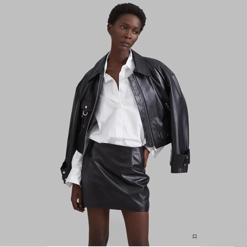 | nameOriginal | th ~ row Spring and Autumn new black short classic American motorcycle leather jacket clean simple leather jacket |