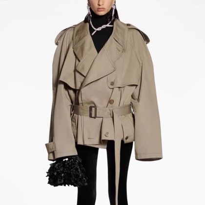 | nameOriginal | th ~ row workwear windbreaker women's spring and autumn loose large profile double-breasted short lace-up waist tight coat top |