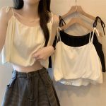 Thai Style Ice Silk Small Camisole Vest Women's Summer Strap Design Sense Flower Bud Puffy Doll Shirt Short Sleeveless Top