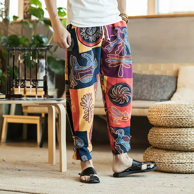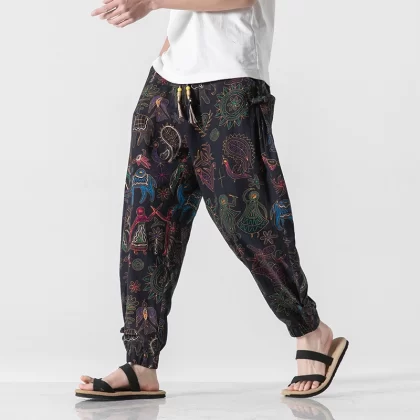 | nameOriginal | Thailand beach black and white pattern ethnic style casual pants |