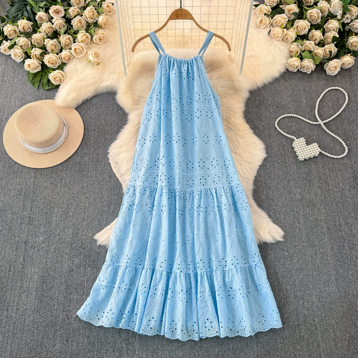 Thailand Sanya seaside travel beach dress for women summer whitening holiday style suspender dress loose slimming outfit