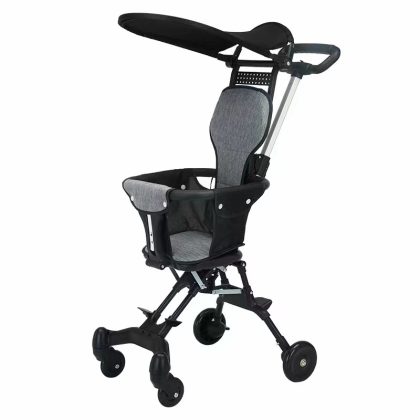The baby walking cart is portable and can be folded with one button. The high landscape baby walking cart can be installed in both directions.