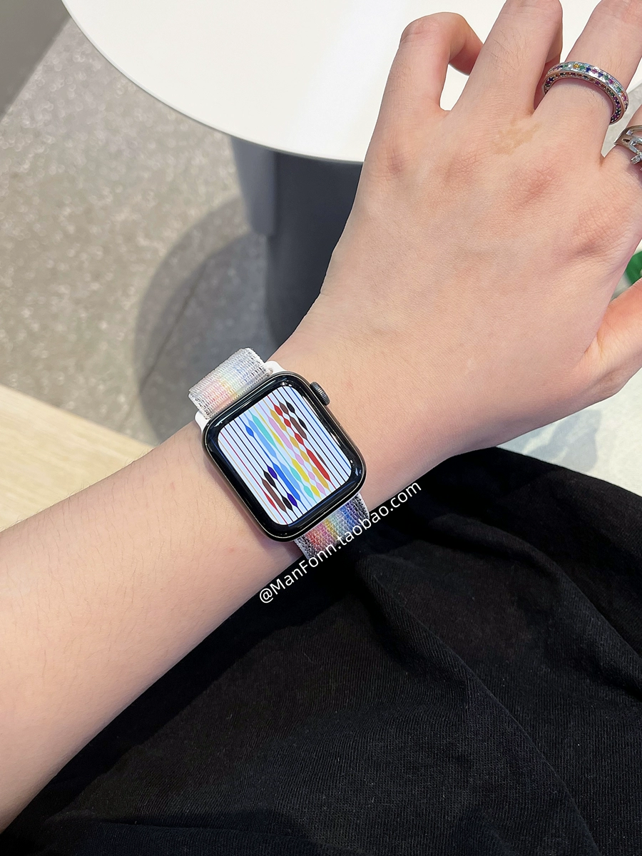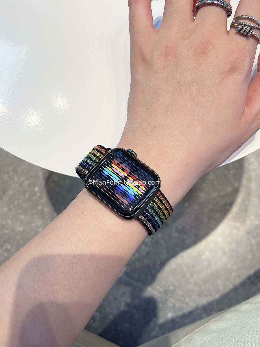 The new rainbow nylon strap is suitable for Applewatch 9th generation iWatch6543 Apple watch loop 78se