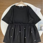 هناك نوعان من القمصان كبيرة الحجم ذات رقبة دائرية وأكمام قصيرة مع خياطة وهمية