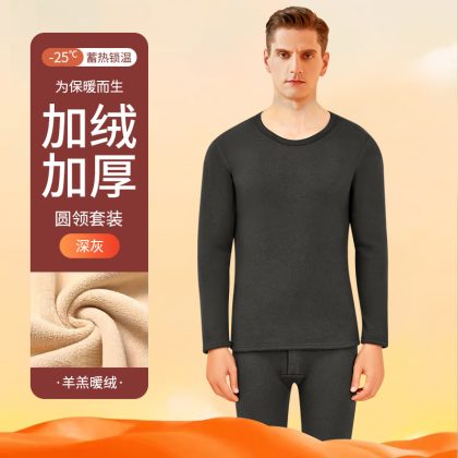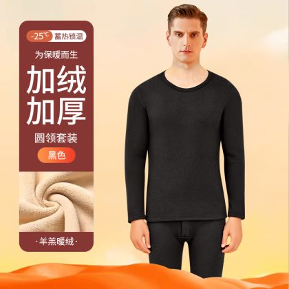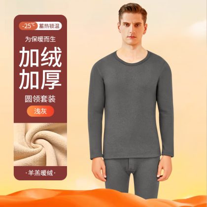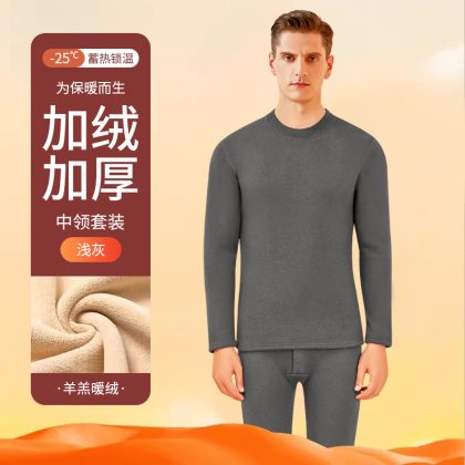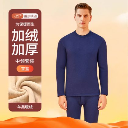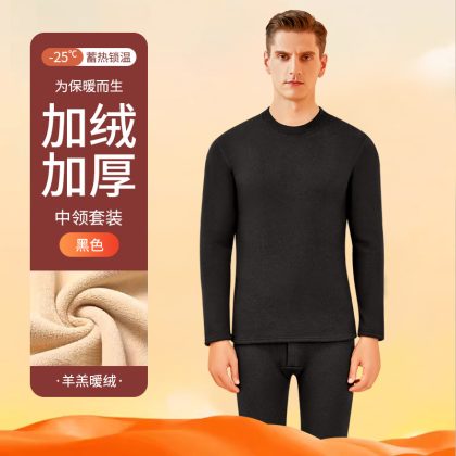 nameOriginal | Thermal underwear men's thickened fleece-lined lambswool bottoming heating mid-collar autumn clothes long pants men's thermal suit winter |