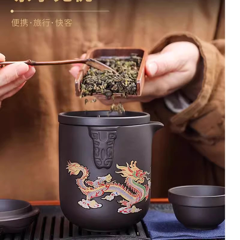 | nameOriginal | Thermochromic Purple Clay Express One Pot of Six Cups Travel Tea Set Handmade Set Portable Leather Bag Whole Set Outdoor Tea |