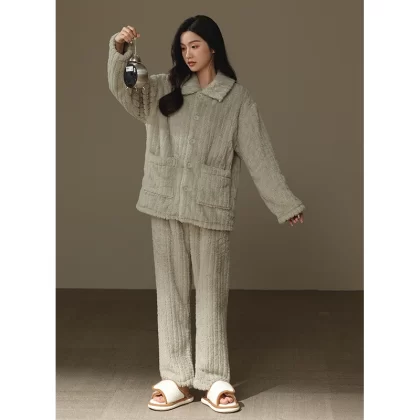 | nameOriginal | "Thick plus velvet" warm couple's pajamas winter coral velvet flannel one man and one woman plush cardigan home wear |