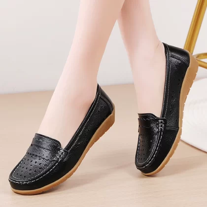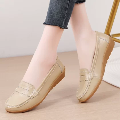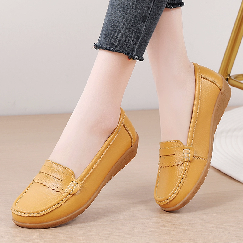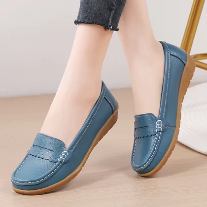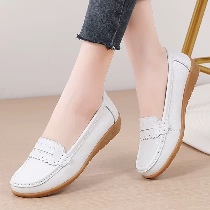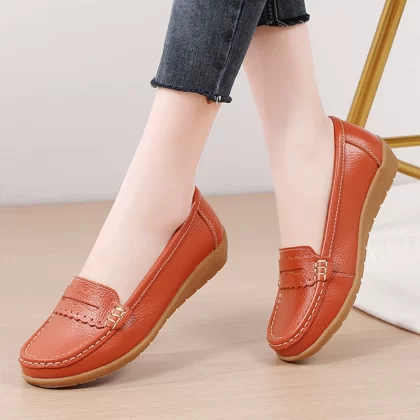 نعل سميك من الجلد المريح للربيع والخريف، حذاء بكعب عريض
