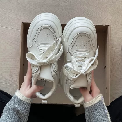 سميك أزياء الخريف والرياضات الشتوية ، أحذية أبيض أبيض فاتح