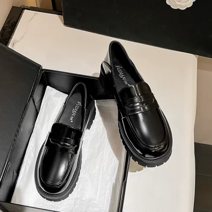أحذية جلدية صغيرة الحجم ونعل سميك للربيع والخريف سهلة الارتداء