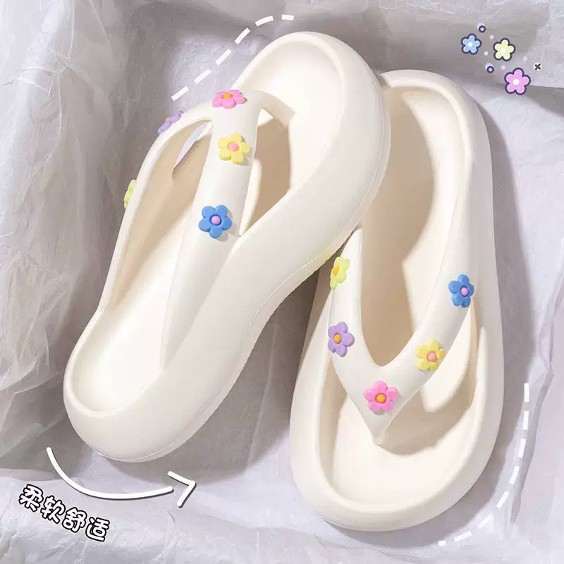 | nameOriginal | Thick-soled women's summer white flip-flops at the beach |