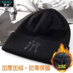 Thick velvet hats for men and women, knitted hats, autumn and winter ear protection, simple trendy brand, Korean style woolen hats, black