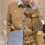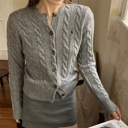 | nameOriginal | Thick wool round neck twist large size knitted cardigan |