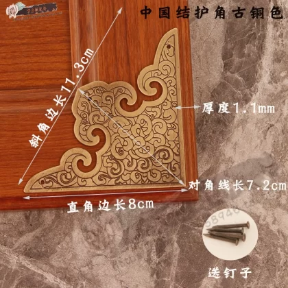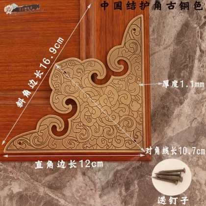 Thickened Chinese antique wardrobe cabinet door pure copper corner guard door copper clad corner carved corner piece corner flower furniture copper accessories