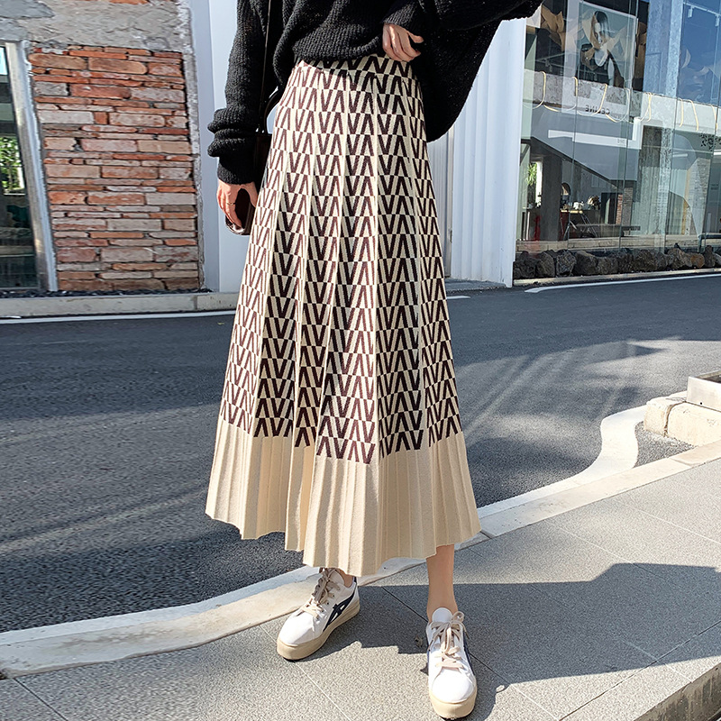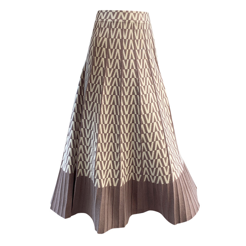 | nameOriginal | Thickened Knitted Skirt Korean Style Large Swing High Waist Stitching Contrast Color A- line Skirt with Sweater Mid-length Base Wool Skirt |