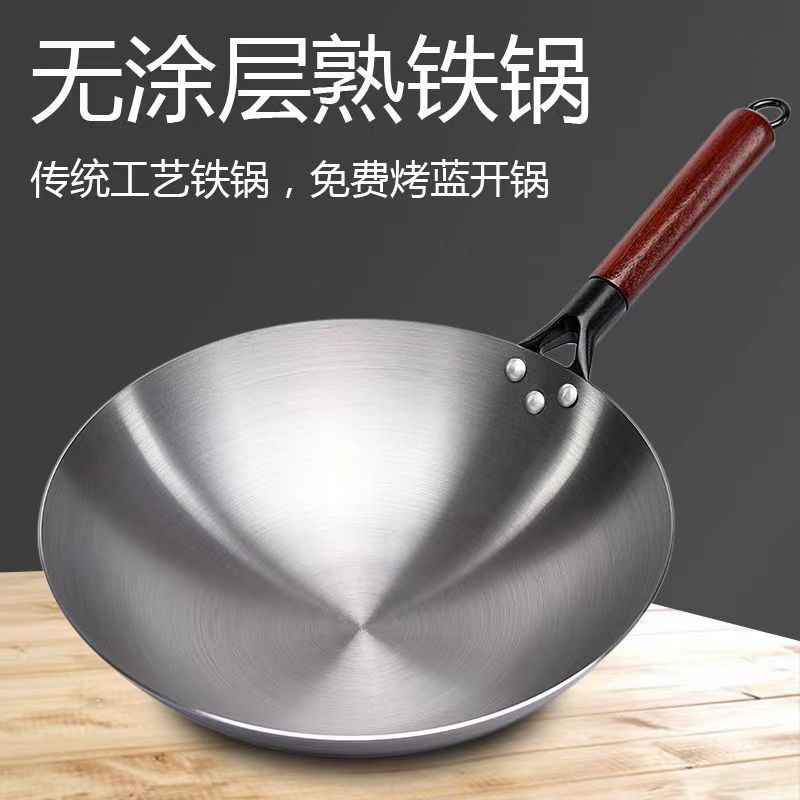 nameOriginal | Thickened Traditional Iron Pot Round Bottom Grilled Blue Vintage Pot Household Kitchen Restaurant Chef Coal Gas Stove Special Wok |