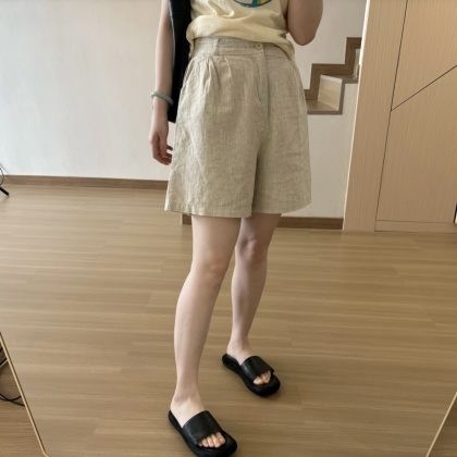 | nameOriginal | Thin Cotton Linen Solid Color High Waist Sports Shorts Women's 2024 Summer New Casual Slimming One Button Wide Leg Shorts |