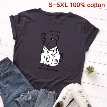 تي شيرت رقيق ولطيف مطبوع بمقاس كبير أوروبي وأمريكي بأكمام قصيرة