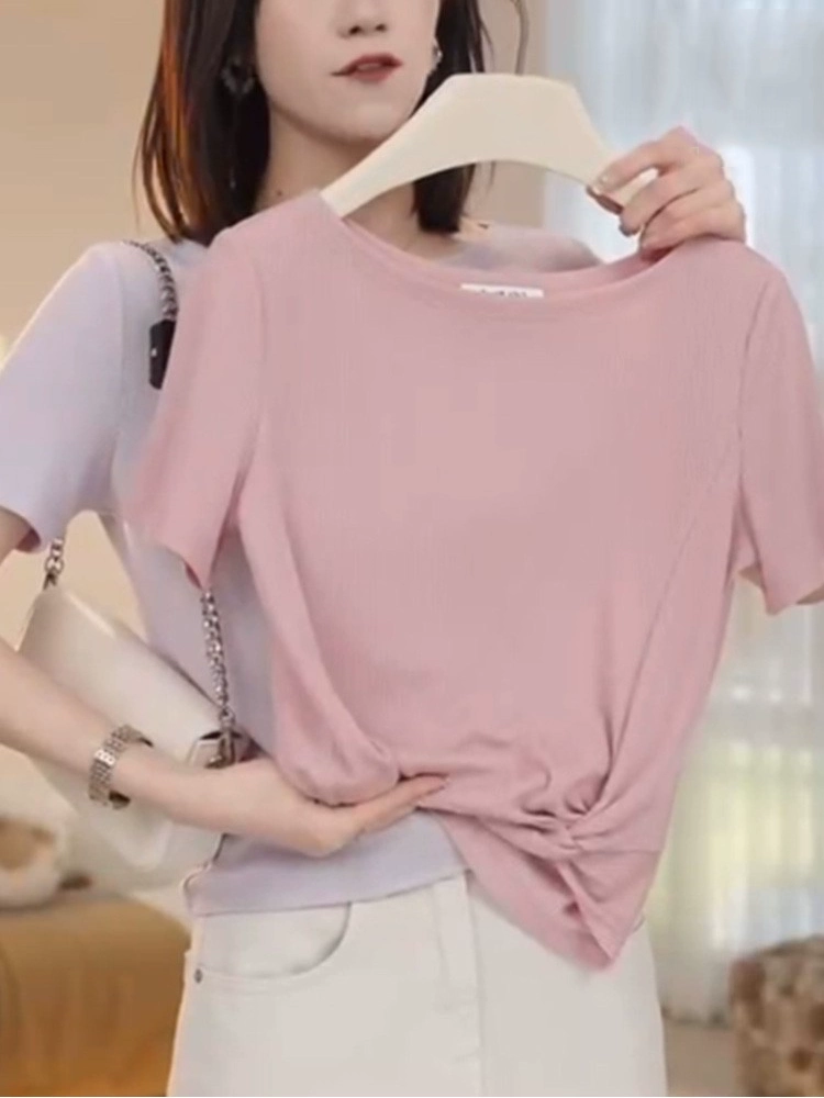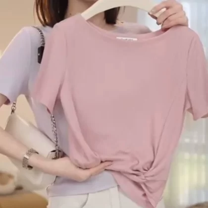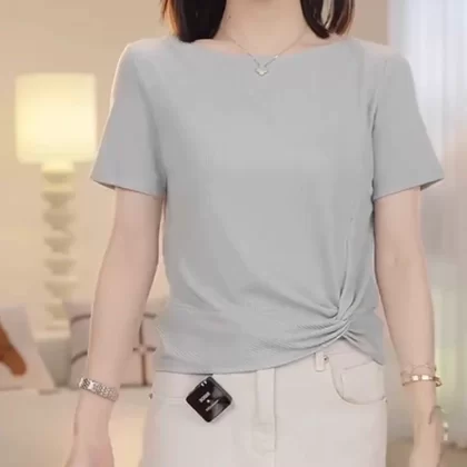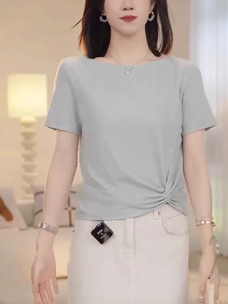 | nameOriginal | Thin fashionable casual top with twisted hem and waisted waist |