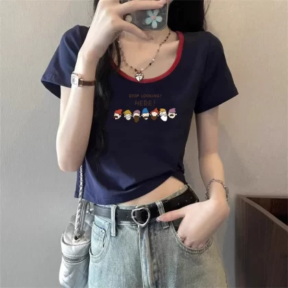 nameOriginal | Thin high-end contrasting color pure cotton top short-sleeved T-shirt |