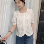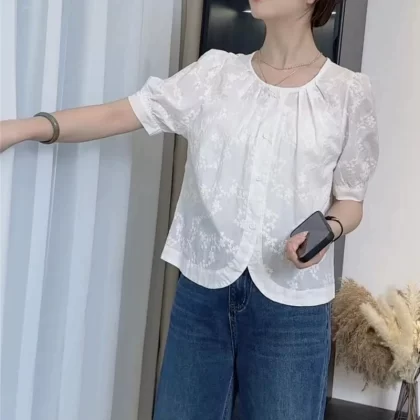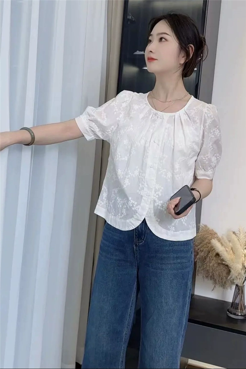 Thin Korean style loose embroidered short-sleeved shirt for small people
