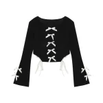 بلوزة رفيعة بأكمام طويلة وتصميم بقصة ضيقة وربطة عنق