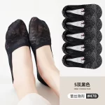 Thin non-falling and anti-falling pure cotton invisible socks with lace