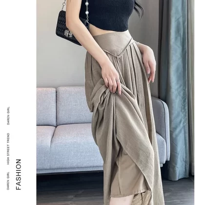| nameOriginal | Thin pinch-waist strappy wide-skirt pleated wide-leg pants |