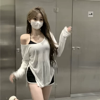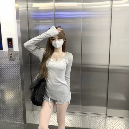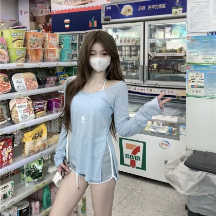 | nameOriginal | Thin round neck loose slit casual long-sleeved T-shirt |