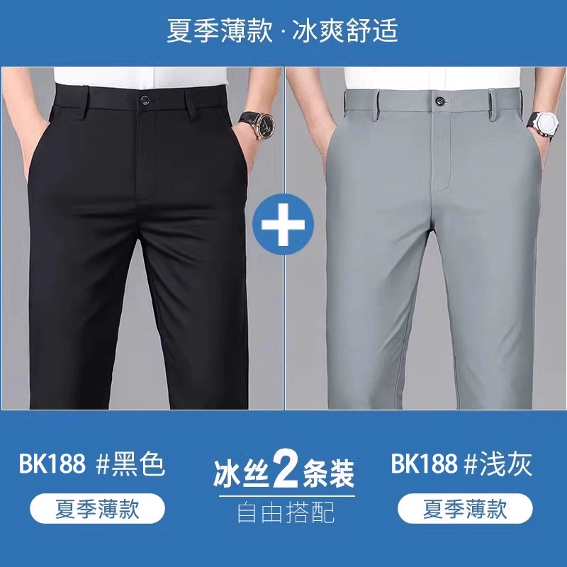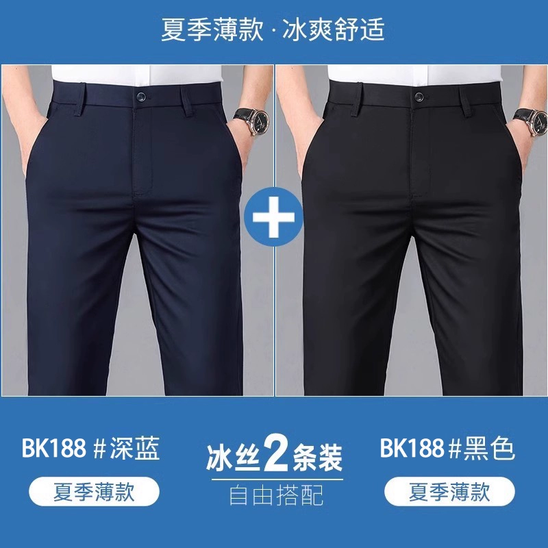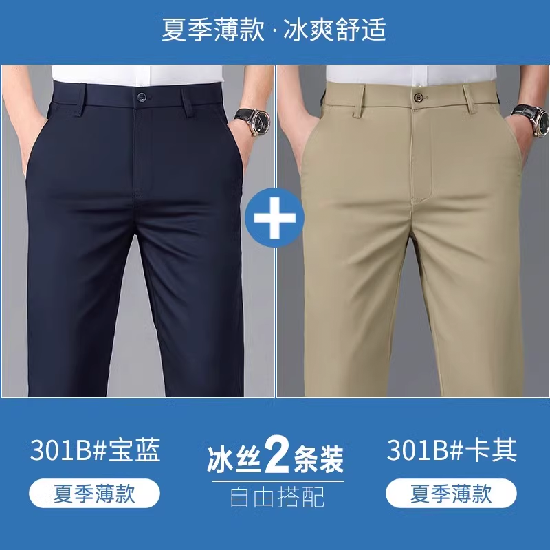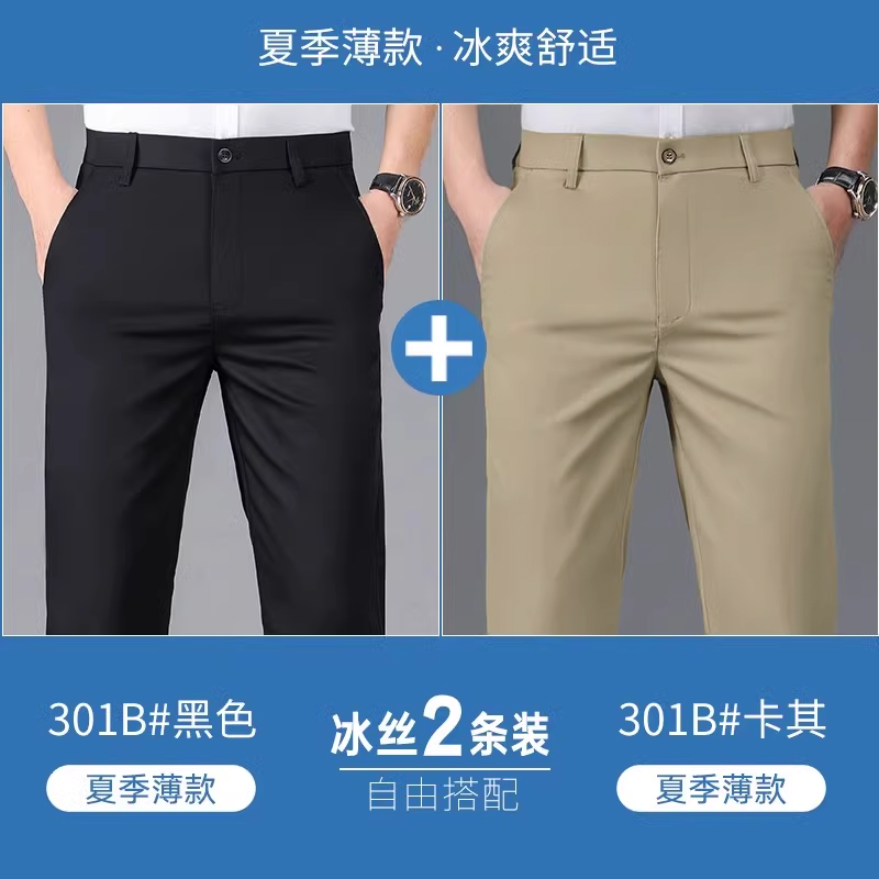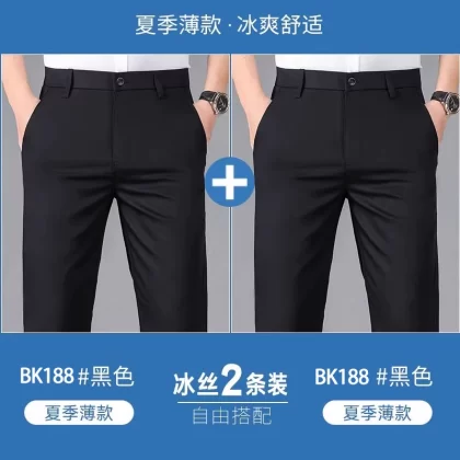 | nameOriginal | Thin straight men's spring and autumn business ice silk trousers |