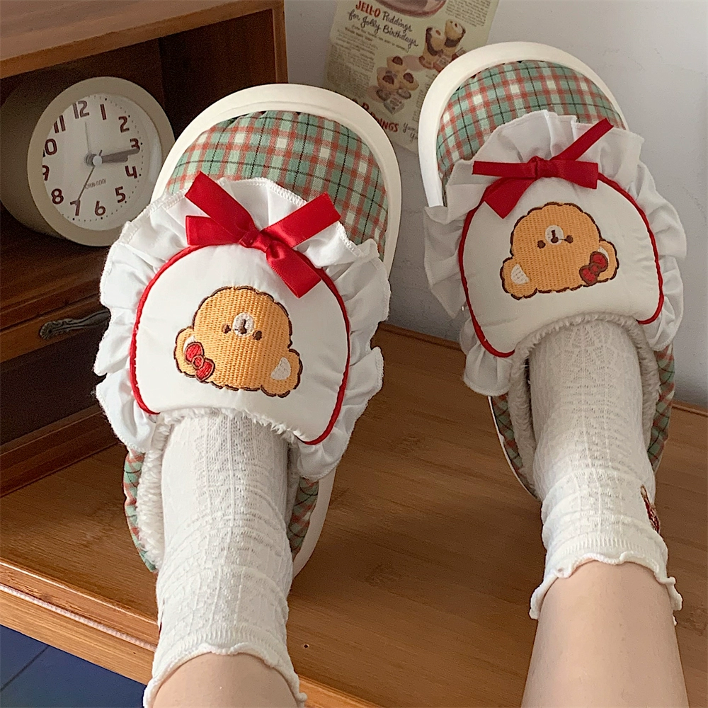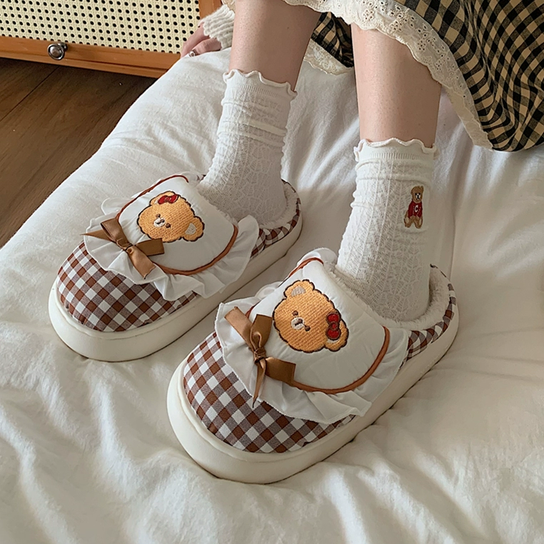 | nameOriginal | Thin strips of cute ins internet celebrity bear cotton slippers for couples in winter, warm plush home shoes for men and women, confinement shoes |