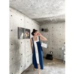 Thin summer design niche denim suspender skirt