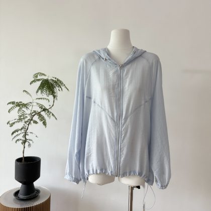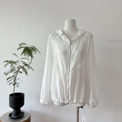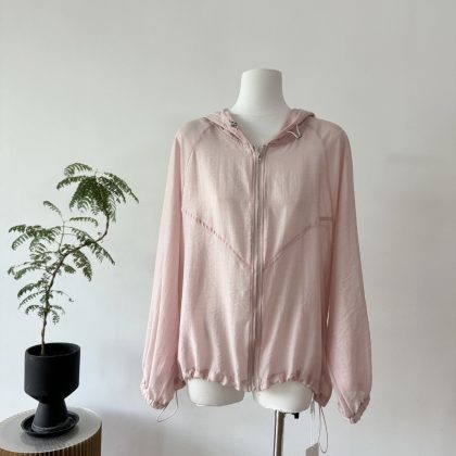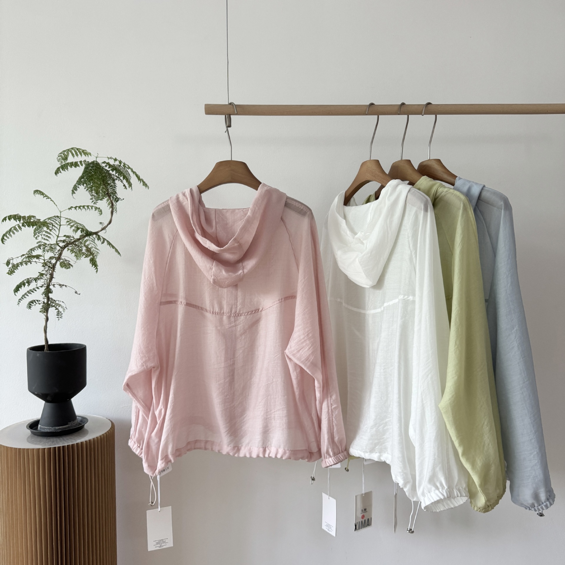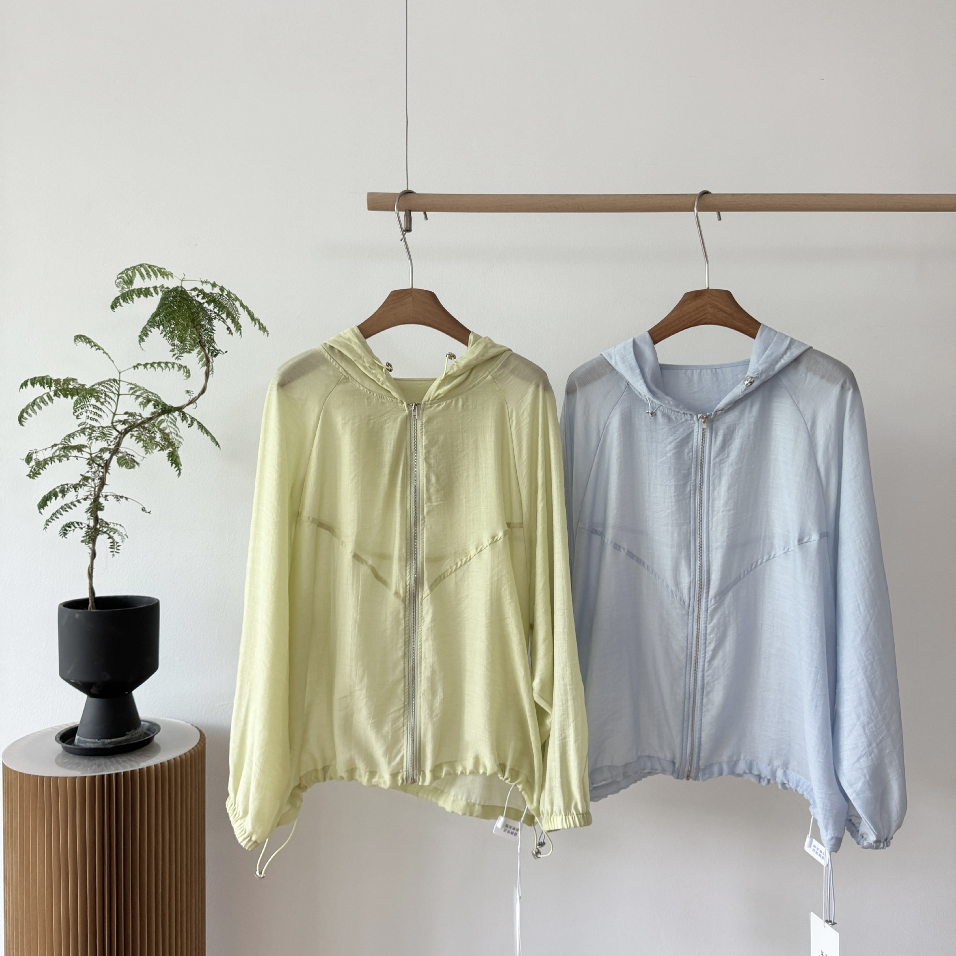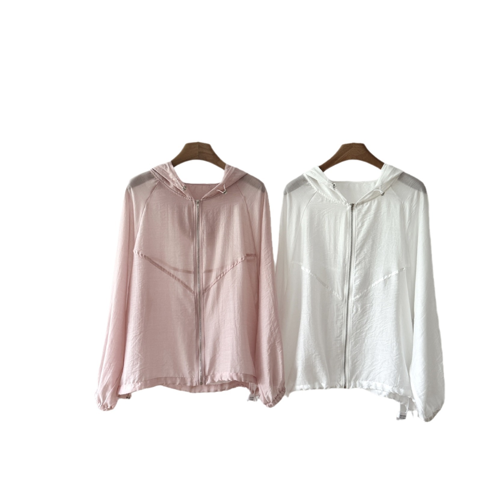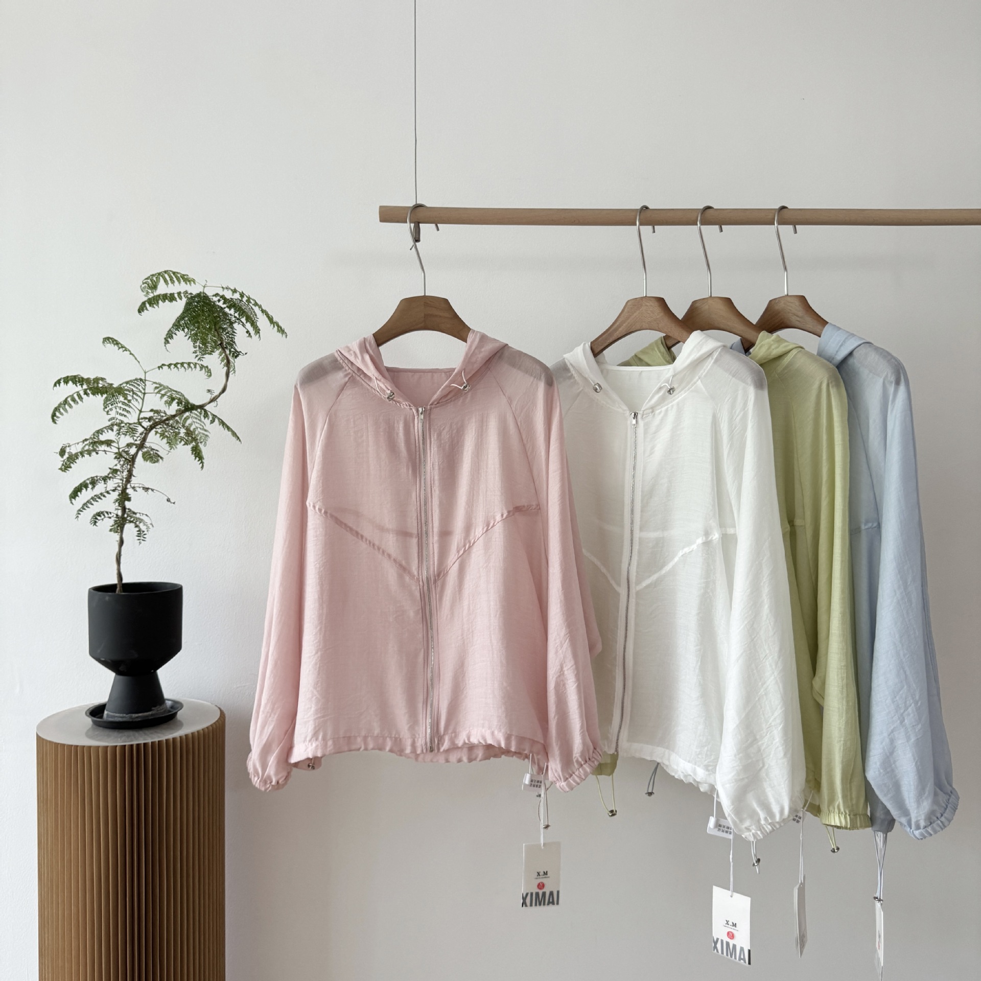 Think of You Every Day All-Match Solid Color Simple Hooded Sun-Protective Shirt Women's Summer Loose Casual Slimming Zipper Blouse